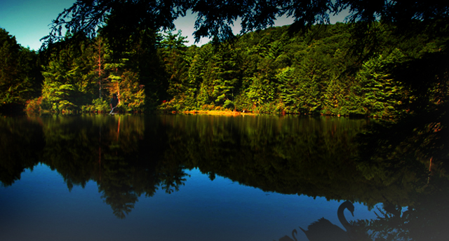 Until the sun goes down and swans glide to their nest for the night, he stays there with his feet deeply rooted at the edge of the water, watching inwardly with his eyes closed.
